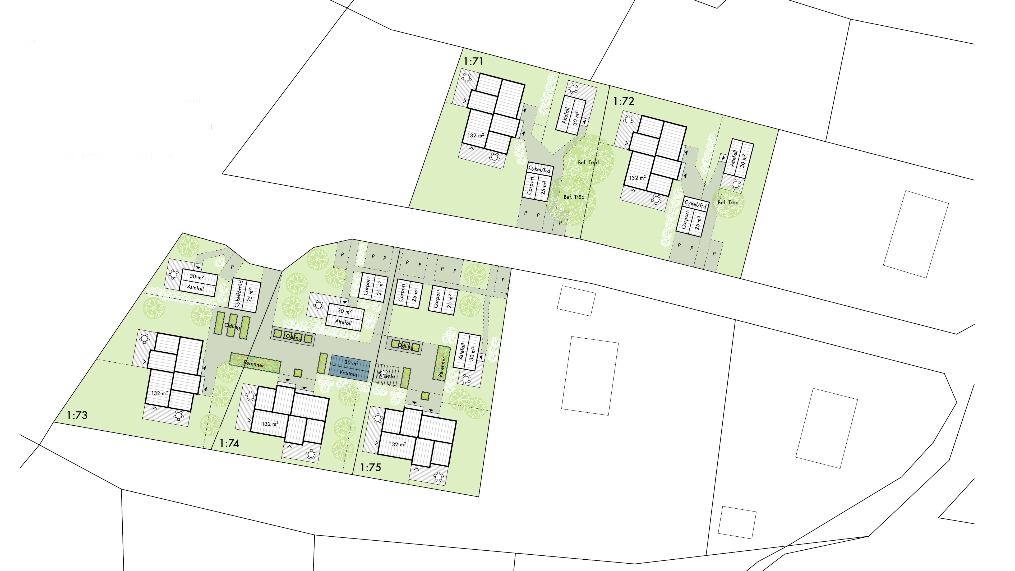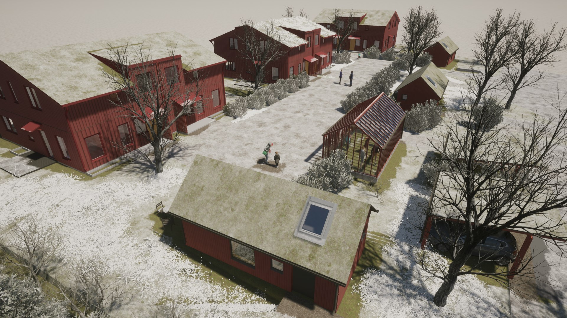 Ekerö-Mörby är ett nytt litet bostadsområde i Ekerö kommun på Färingsön som Ascape Arkitektur utvecklat tillsammans med markägaren. Området ligger nära kollektivtrafik men i övrigt i ett väldigt lantligt läge i direkt anslutning till åkermark. Läget och Färingsös historia som jordbruksbygd i närheten till Drottningholm och flera stora gods och herrgårdar, inspirerade oss till en arkitektur som tar upp färg och formspråk från de ståtliga och välvårdade ekonomibyggnader som kantar vägarna på väg ut mot Ekerö Mörby. Vi försökte hitta ett formspråk som kändes nytt och spännande samtidigt som det flörtade med historien och omgivningen. Området är tänkt för yngre personer eller unga familjer som vill fly innerstaden och letar efter ett naturnära och praktiskt boende med möjligheter till odling och en social närvaro och gemenskap inom bostadsområdet. Gästhus, växthus, cykelförråd och mobilitetslösningar ska hanteras av bostadsrättsföreningen och bidra till en social gemenskap.