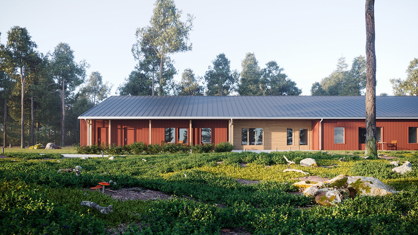 Häggesta gruppboende ligger på en ostörd plats mitt i naturen men samtidigt nära Bollnäs centrum bara 3 km bort. Byggnaden passar väl in i det naturnära området med ett enkelt och tydligt formspråk.
