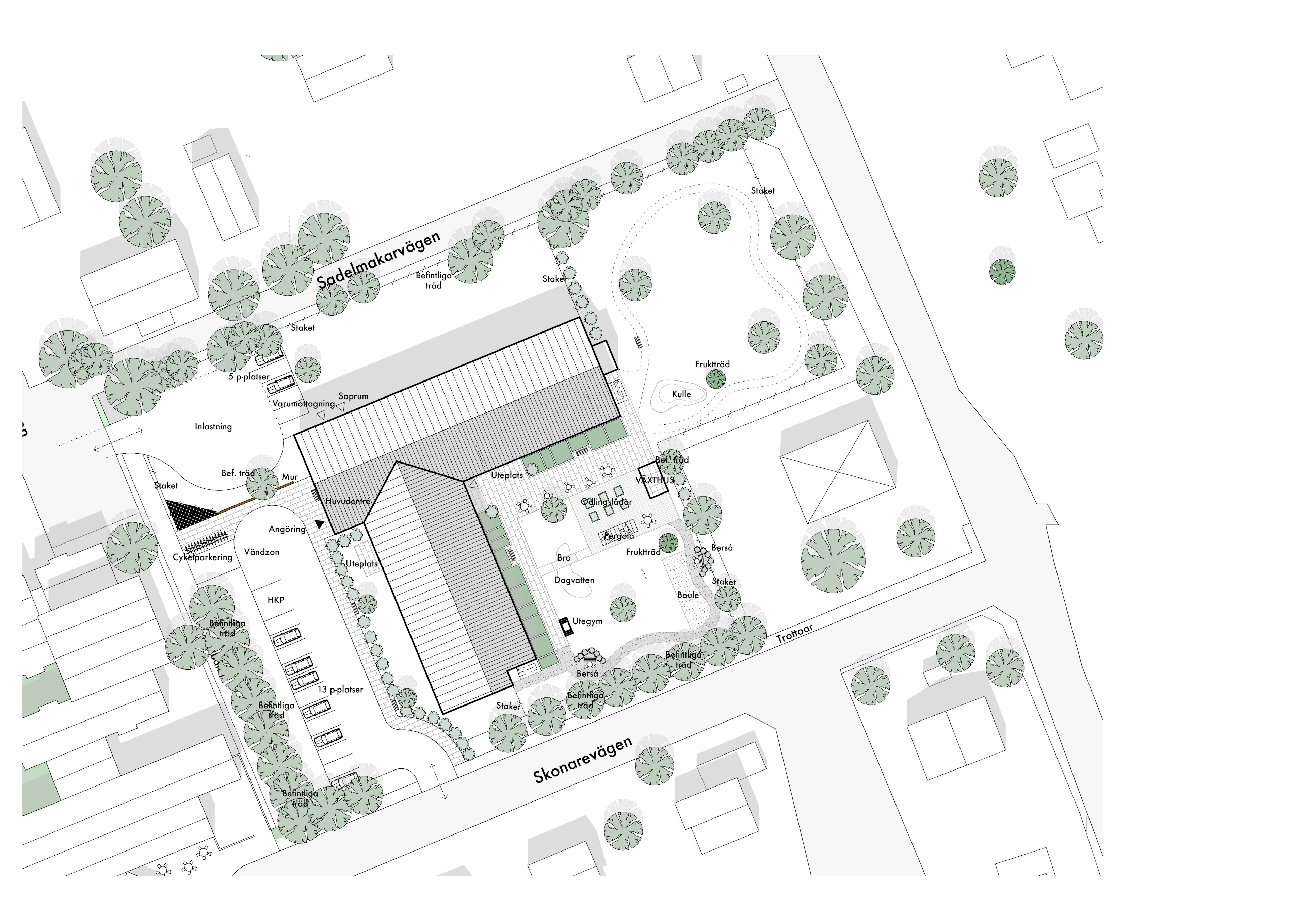 I det idylliska Nyhamnsläge planeras ett nytt äldreboende i ett centralt läge på en öde tomt bakom det befintliga äldreboendet. Tanken är att det nya äldreboendet ska ersätta det gamla boendet som istället omvandlas till lägenheter. Det nya boendet blir tre våningar. Högst upp i huset blir det en stor samlingslokal med utsikt över Öresund och Danmark på andra sidan vattnet. På läsidan i byggnadens inre hörn förläggs en stor trädgård med växthus, pergola, dagvattendamm och en promenadslinga bland äppelträd.