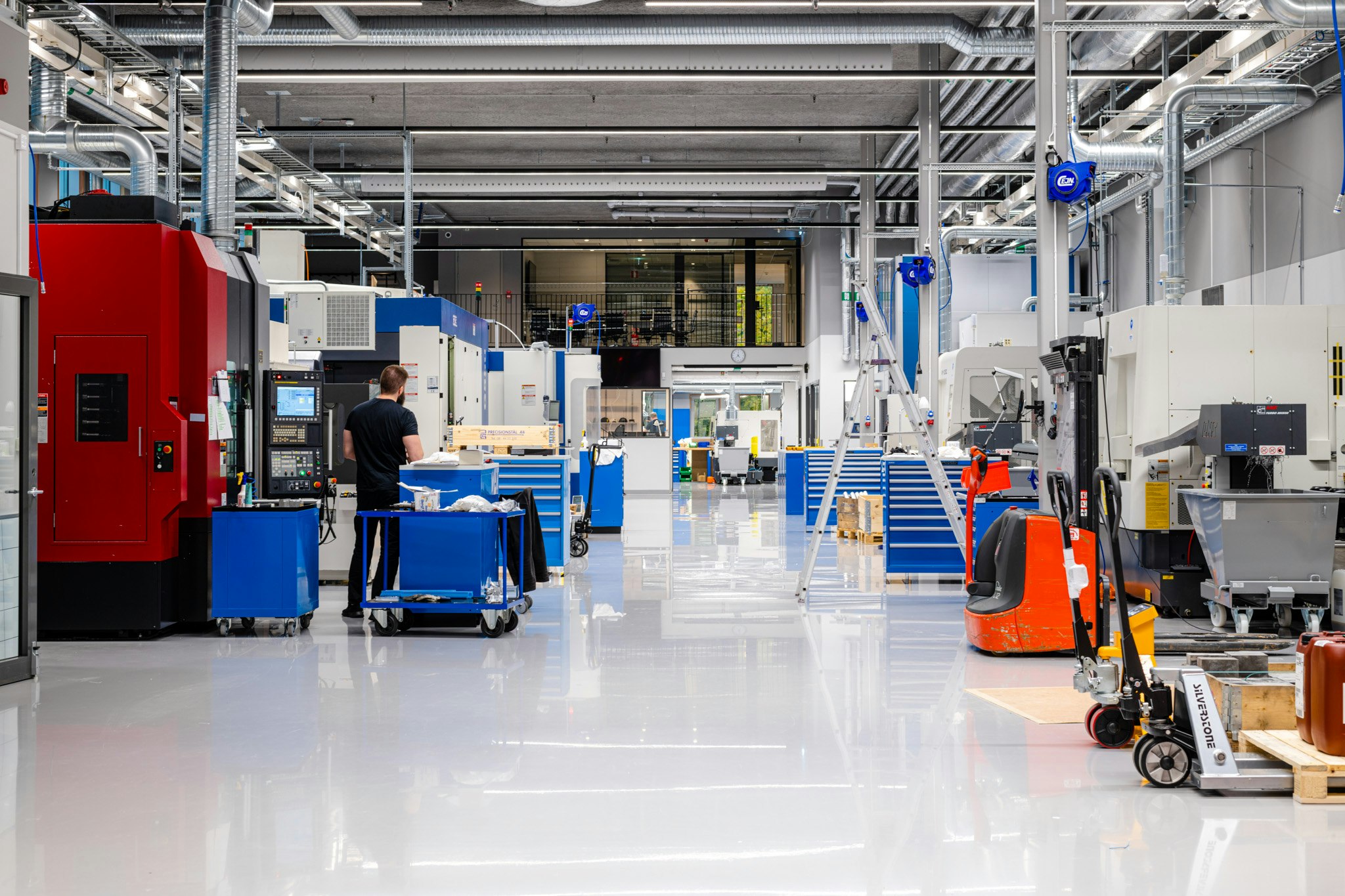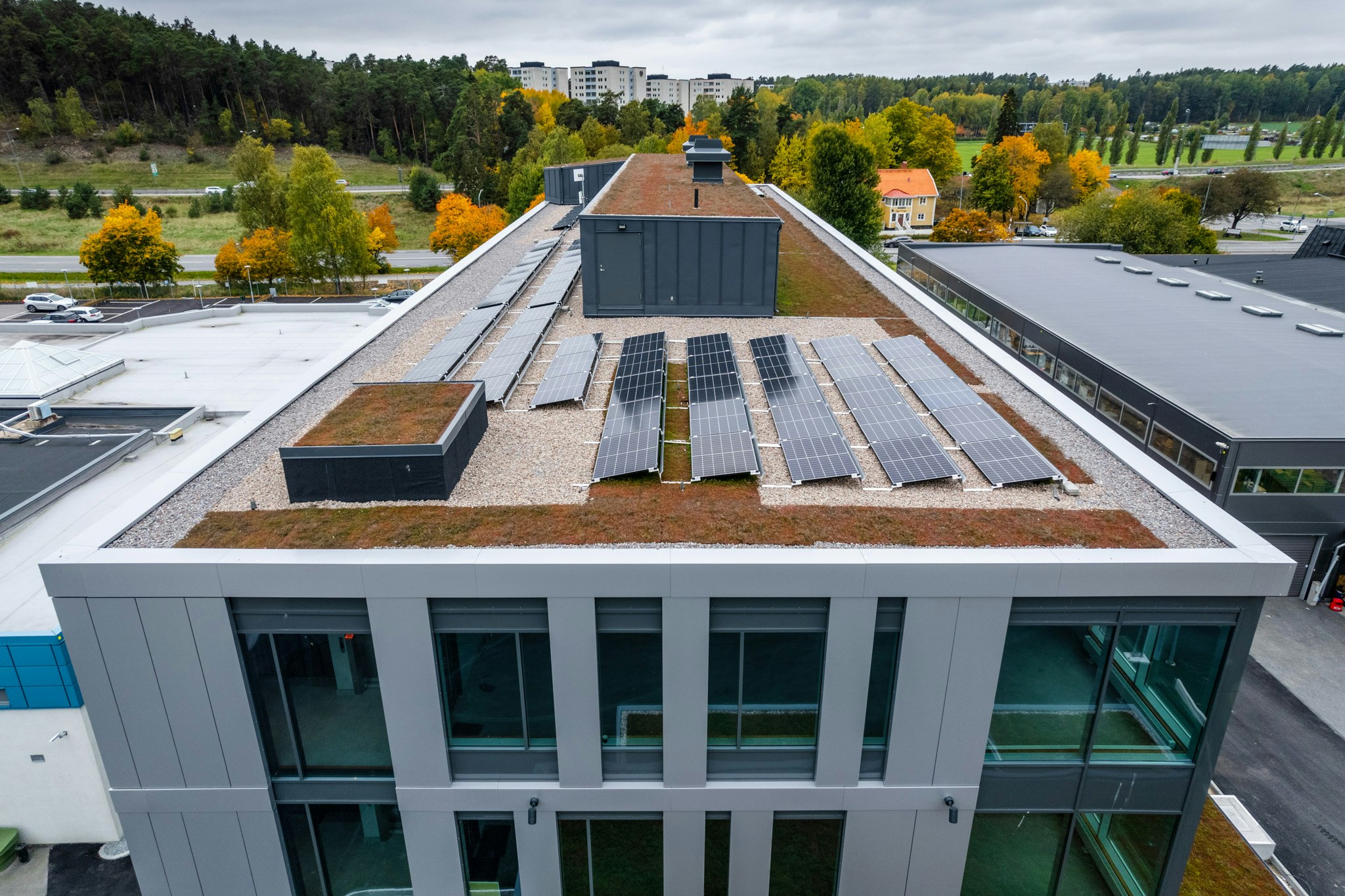 Vår arbete innebar framtagande av koncepthandlingar, program- och systemhandling, bygglov samt bygghandlingar. Huset är uppfört i 4 våningsplan om totalt ca 4 500 kvm LOA + källare. Byggnaden inrymmer en högteknologisk finmekanisk verkstad, moderna kon- torslokaler, skyddsrum, källare med en takhöjd på 3,5 m samt en golfsimulator. Solceller gör att huset är självförsörjande på el större delen av året. Huset står på Stockholms grundvattentäkt vilket inneburit att vi har fått säkerhetsställa att inget olämpligt kan nå grundvattnet. Verkstadsgolvet klarar 2,5 ton per/m2 för att klara stora och tunga maskiner med höga krav på vibrationer. Den största maskinen väger 28 ton, en Grob 5-axlig CNC maskin.