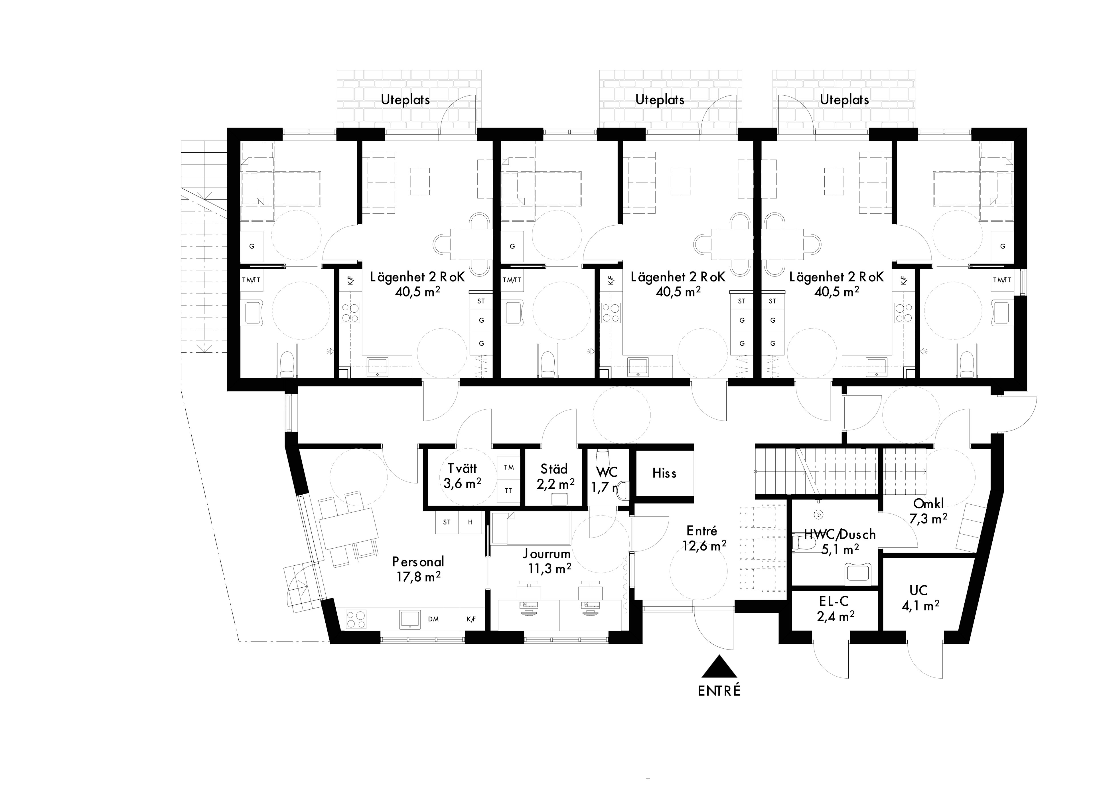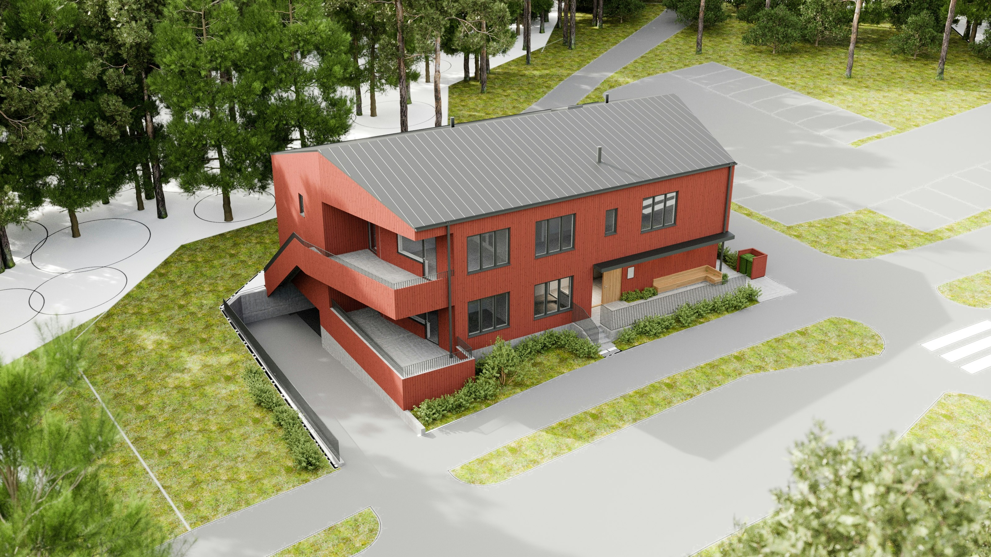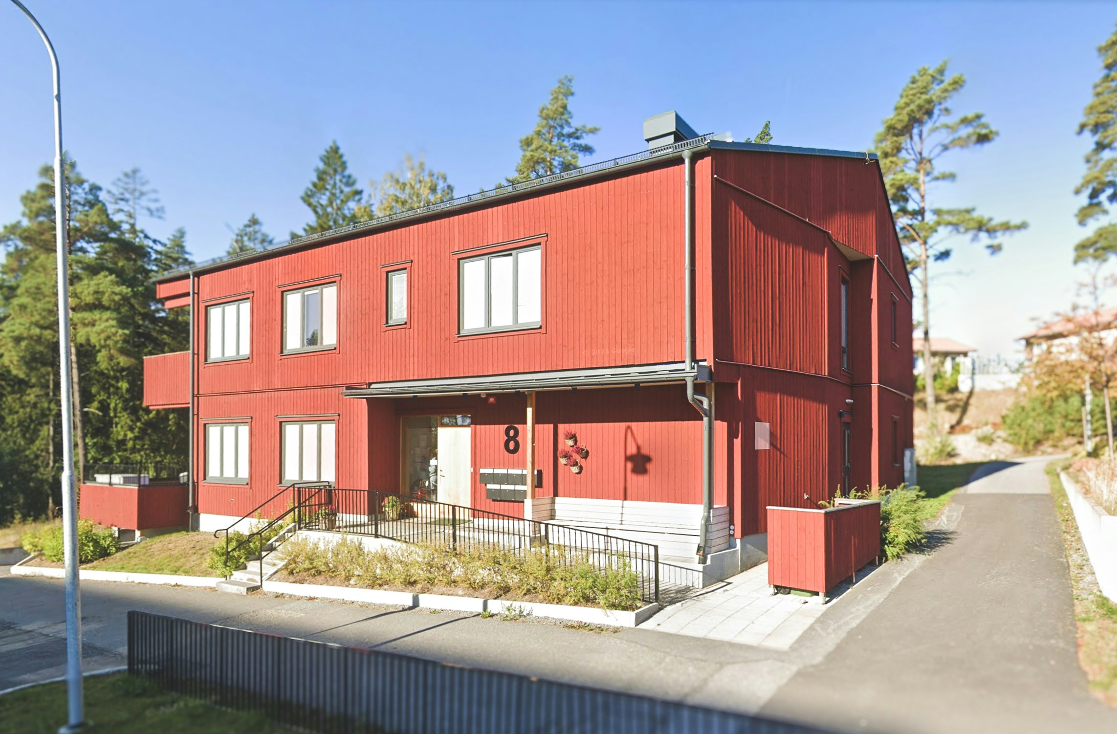 På en liten tomt i Steningehöjden strax utanför Märsta byggs ett gruppboende i två plan med 6 lägenheter. Huset är gestal- tat som en större stadsvilla i direktanslutning till lokalgatan. På grund av den begränsade tomtstorleken är angöring, parkering och teknikutrymmen placerade i ett garage under huset. Stor möda har lagts på att få huset att landa på den sluttande tomten och att med mark och vegetation få till fina möten runt huset.